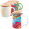 Alle bedruckbaren Tassen bestehen aus Keramik. Ihr persönliches Motiv wird auf einer max. Fläche von 190 x 80 mm eingebrannt. Die Tassen selbst sind 95 mm hoch und fassen ca. 340 ml. Selbstverständlich sind sie spülmaschinengeeignet.